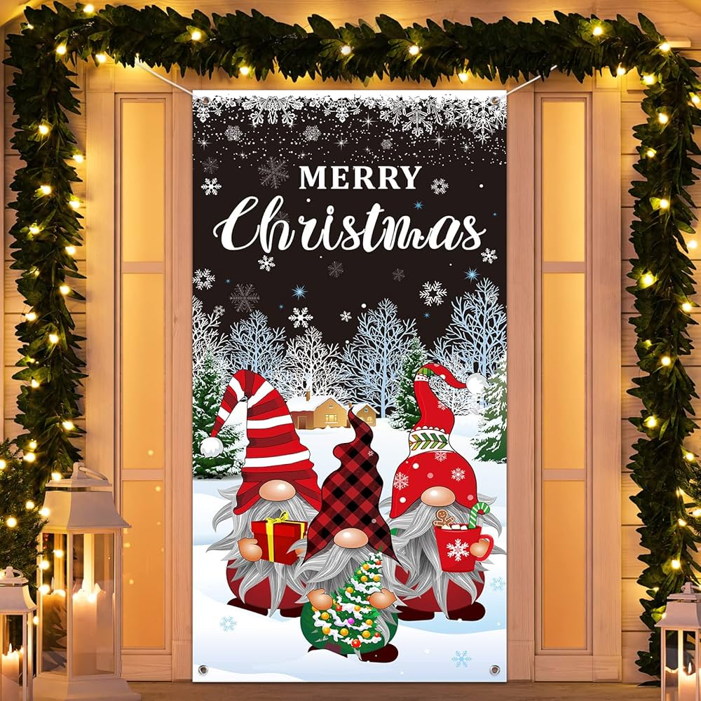 Christmas Gnome Door Cover Merry Christmas Front Door Decoration