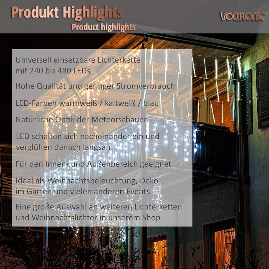 VOLTRONIC LED Meteor Shower Fairy Lights for Indoor and Outdoor